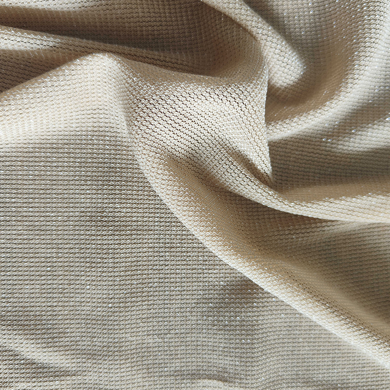 | 13-11 | 78% نایلون، 16% الیاف نقره، 6% اسپندکس | 115GSM | 60/61 | رنگرزی، گلدوزی، پولک دوزی، قالب گیری قطره ای و غیره. | لباس های ورزشی، جلیقه، پارچه های آستر، رویه کفش، پارچه های تزئینی، آستر کیف، منسوجات خانگی، مواد بسته بندی، چادرهای فضای باز و غیره. | |
